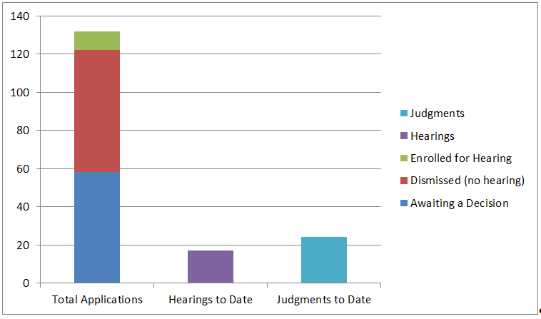 The Constitutional Court has received 132 applications, 64 of of which have been dismissed (most commonly leave to appeal has been refused). The Court has not yet taken a decision on 58 of the cases, and has enrolled 10 for hearing.