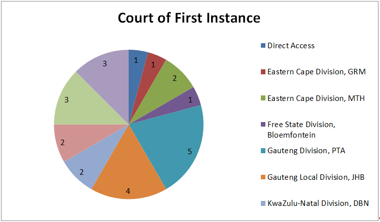 This graph shows how a case got to the Constitutional Court, i.e. did it go straight from the High Court to the Constitutional Court, or was there first an appeal to the Supreme Court of Appeal.
