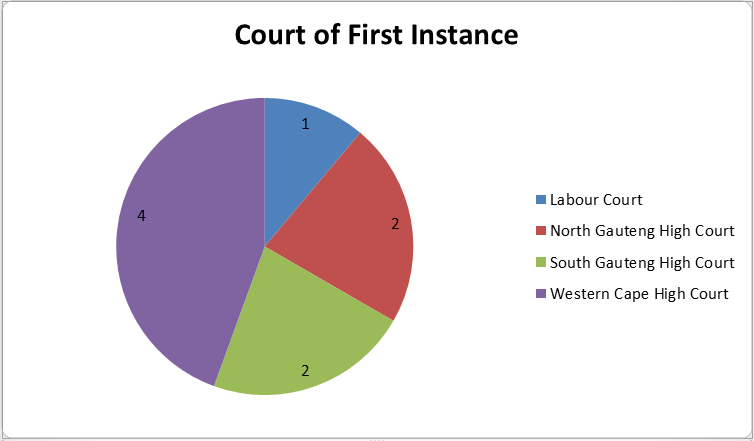 This graph shows the court that first heard a case that ended up in the Constitutional Court.