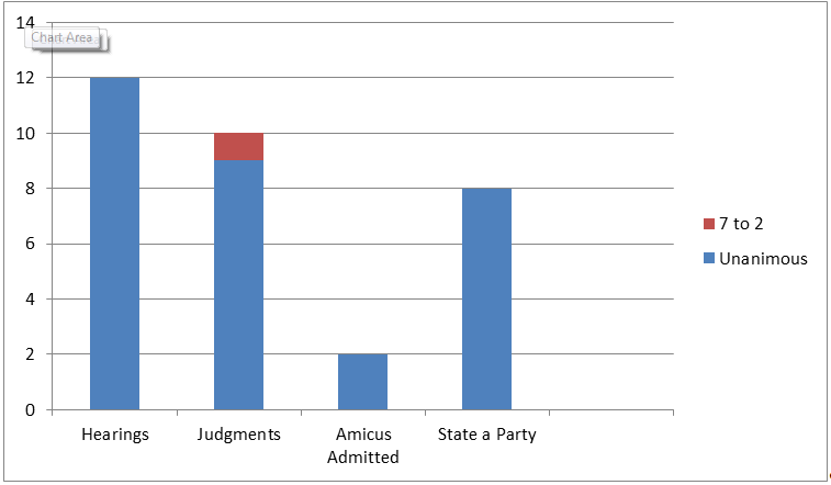 | Justice | Participation | Written Majority | Voted with Majority | Written Concurrence with the Majority | Total in Majority | Written Minority | Voted with Minority | Total in Minority |